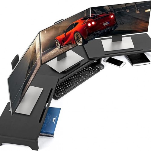 - 【Triple Monitor Stand for Desk】The three monitor stand is built up with 3 shelves, which can hold three 27″ computer monitor(please refer to picture 4).Much space is available for matching multiple devices – PC/laptop/printer/books.You can also set up the desk as your need. The height of this black monitor stand is about 4in (the other black monitor stand is about 3.1in )
