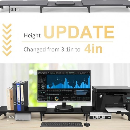 - 【Screen riser with Adjustable Length & Angle】Three fix holes for adjusting the length.The minimum and maximum length of the monitor riser is about 43.3in and 60.7in.The angle of the left and the right shelf can be adjusted according to the desk corner construction and the size of computer screen. Helping you organize the desk reasonably,and find the most comfortable posture during long-time work, ease your neck and back.