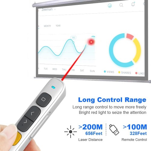 Norwii N29 Presentation Clicker Slide Pointer Clicker for Powerpoint Presentations, Wireless Presenter with Hyperlink & Volume Control, Presentation Remote (White)