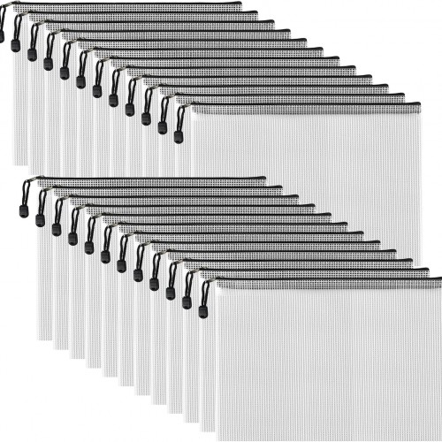 Oaimyy-24PCS-7 x 11″ inches-Mesh Zipper Pouch, Plastic Zip File Folders Puzzle Bags for Organizing,for Office Supplies,Travel,Home Storage-Black