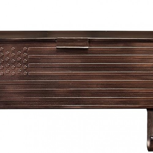 - Blue Patriotic Metal Wall Mounted Mailbox with Outgoing Mail Flag and Newspaper Hangers exterior dimensions are: 16.5in L x 4.5in W x 6in H, 4 Lbs.