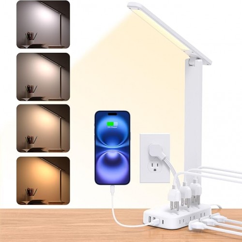 - 【10-IN-1 Deskop Power Strip with USB Ports 】The small desk lamp for college dorm room is also equipped with 2 USB-C port, 2 USB-A ports and 6 AC outlets(Rating:125V 60Hz 15A 1875W MAX), making your phone, tablet, kindle, watch, humidifier and other electronic devices are charged whether the lamp is on or off, building your own working station. Fully save your time and space.
