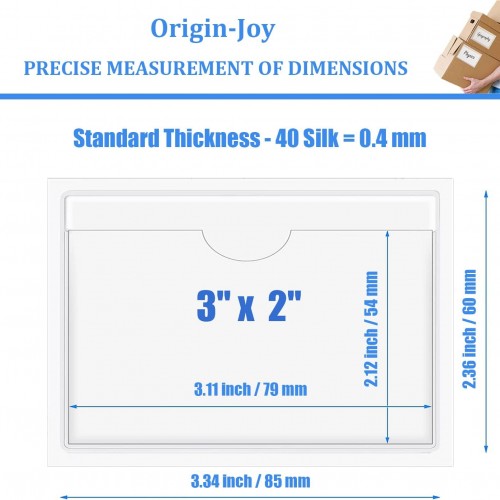 Origin-Joy 25 PCS Self-Adhesive Index Label Pockets, Clear Plastic Peel & Stick Card Holders with Top Open for Loading (3 x 2 inch)