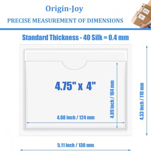 Origin-Joy 25 PCS Self-Adhesive Index Label Pockets, Clear Plastic Peel & Stick Card Holders with Top Open for Loading (4.75 x 4 inch)