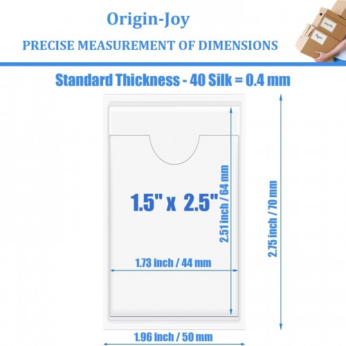 Origin-Joy 35 PCS Self Adhesive Index Card Pockets with Top Open, Clear Plastic Label Holder for Cards of Note, Library and Business, Adhesive Label Pockets & Card Holder (1.5 x 2.5 inch)