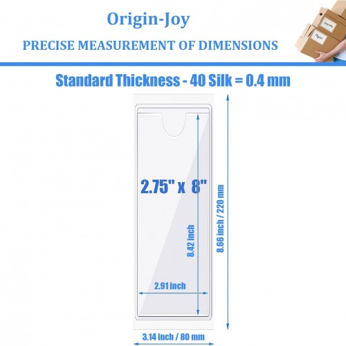 - 【Quality Vinyl Material】Origin-Joy’s adhesive index label pockets sleeves are specially customized for customers’ common sizes, made from quality vinyl with a self-adhesive backing, the thickness is 40 silk, in keeping lightweight and smooth while having good toughness, not easy to deformation, can be used for a long time.