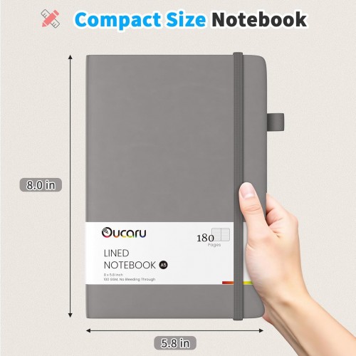 Oucaru Lined Journal Notebook, 8 Pack, 180 Pages, A5 Journals for Writing, 100 GSM Thick Paper, Small Notebooks Daily Journal for Women Men Work, Business, School, Travel Supplies