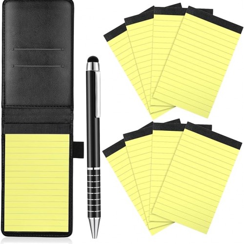 Outus 10 Pcs Pocket Notebook with Pen Set Included Mini Pocket Notepad Holder with 50 Lined Sheets, Metal Pen, 8 Pcs 3 x 5 Inch Memo Book Refills, 30 Lined Paper Per Note Pad (Brown)