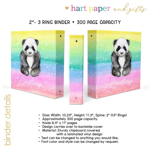 Panda Rainbow Personalized Custom 2″ 3 Ring Binder • School Office Supplies