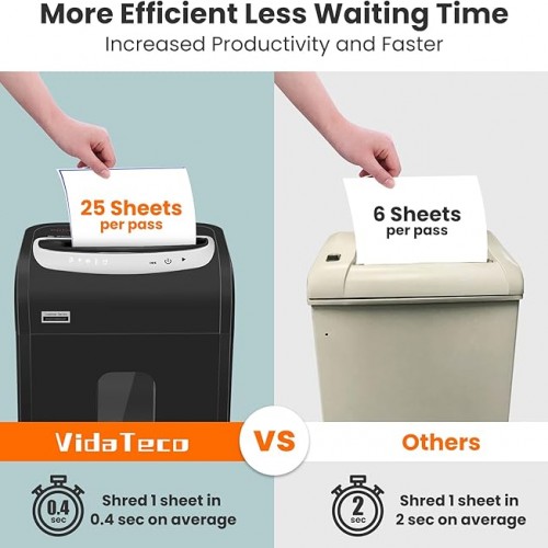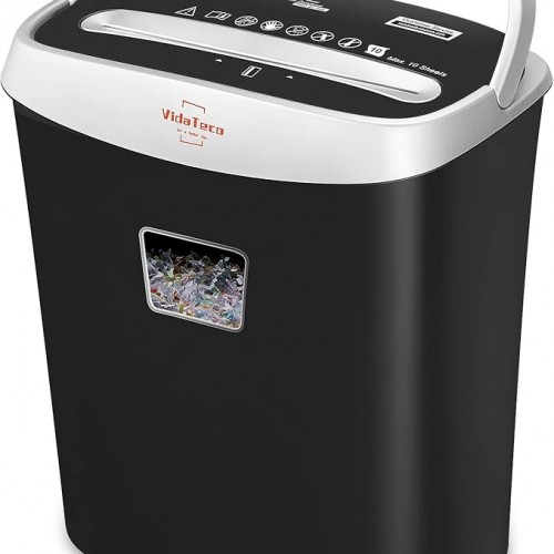 Paper Shredder for Home Use,VidaTeco 6-Sheet Cross-Cut Shredder,Also Shred Card/Clip/Staple,P-4 Higher Security,Small Document Shredder for Office,Paper Shredder Heavy Duty with Jam Proof,3.04-Gal Bin
