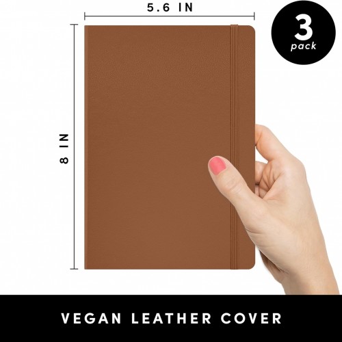 PAPERAGE Lined Journal Notebook, 3 Pack, (Cognac, Dark Green, Navy), 160 Pages, Medium 5.6 in x 8 in – 100 GSM Thick Paper – Hardcover Journaling Notebook for Work, School & Note Taking