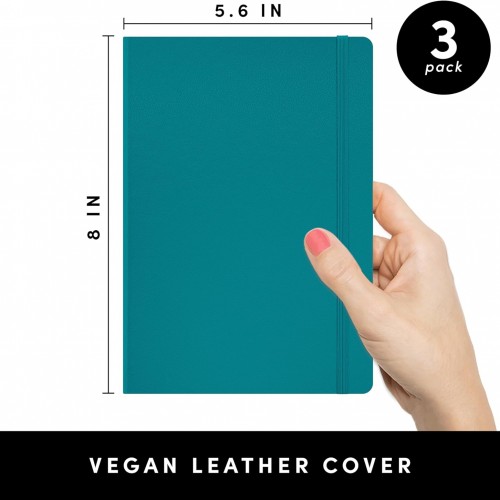 - BEST-SELLING HARDCOVER JOURNAL: This medium 5.6 in by 8 in lined notebook features durable and water-resistant vegan leather cover, rounded corners, 160 pages, inner expandable pocket, sticker labels, ribbon bookmark & elastic closure band.