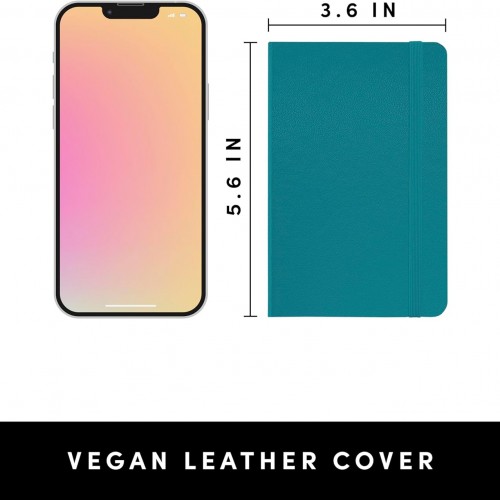 - MINI HARDCOVER NOTEBOOK: This small 3.6 in by 5.6 in lined pocket notebook features a durable & water-resistant vegan leather cover, rounded corners, 160 pages, inner expandable pocket, sticker labels, ribbon bookmark & elastic closure band.