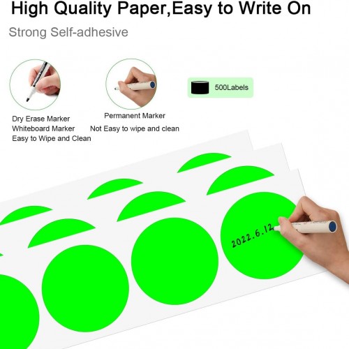 - Matte surface dots are made from high quality paper that is easy to write on with a marker.