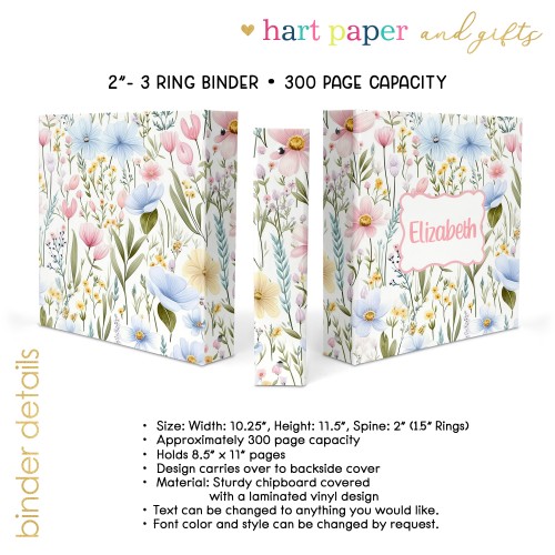 Pastel Flowers Personalized Custom 2″ 3 Ring Binder • School Office Supplies