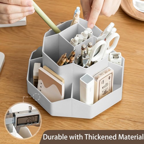 Pencil Pen Holder for Desk, 9 Slots 360 Degree Rotating Desk Organizer, Desktop Storage Pen Organizers Stationery Supplies, Cute Pencil Cup Pot for Office School Home & Art Supplies (Grey)