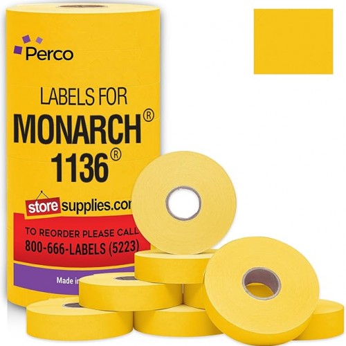 - Perco Fluorescent Red Labels For Monarch 1136: These high quality 0.78” x 0.647” Perco labels are perfectly sized to fit in all Monarch 1136 models. That means easy loading, perfect print alignment, and smoother operation.