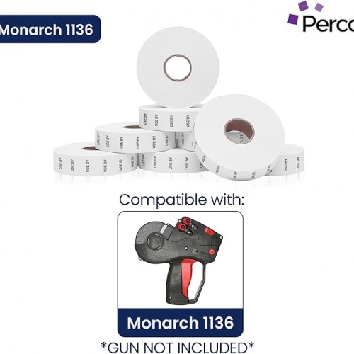 Perco Red Pricing Labels for Monarch 1136 Price Gun – Case of 8 Sleeves, 112,000 Pricemarking Labels Value Pack – with Bonus Ink Rolls Included