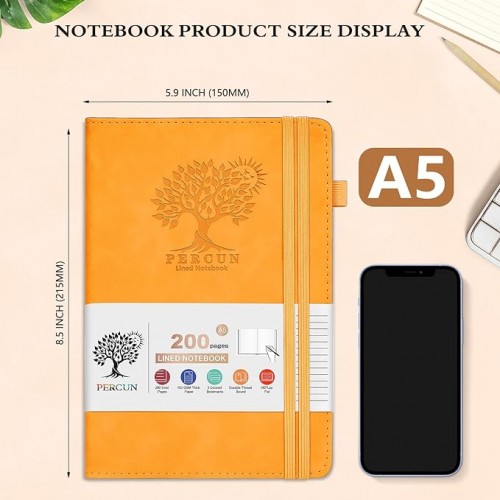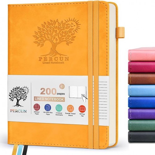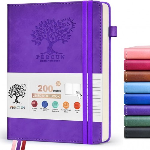 PERCUN Graph Paper Notebook, 160 Pages Grid Journal for women & men, A5 Hardcover Leather Graphing Notebook for School, Work, Travel, Note Taking 5.9”x8.5” (Navy)