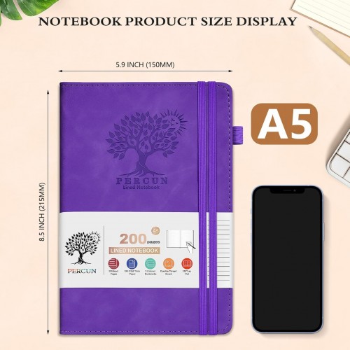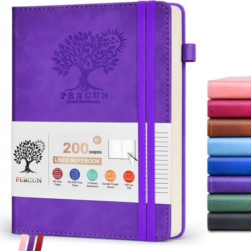 PERCUN Lined Journal Notebook for Men & Women, 160 Pages College Ruled Journal for Writing, A5 Hardcover Leather Notebooks for Work, School, Business, Travel, Daily Diary 5.9″ x 8.5″ – Green
