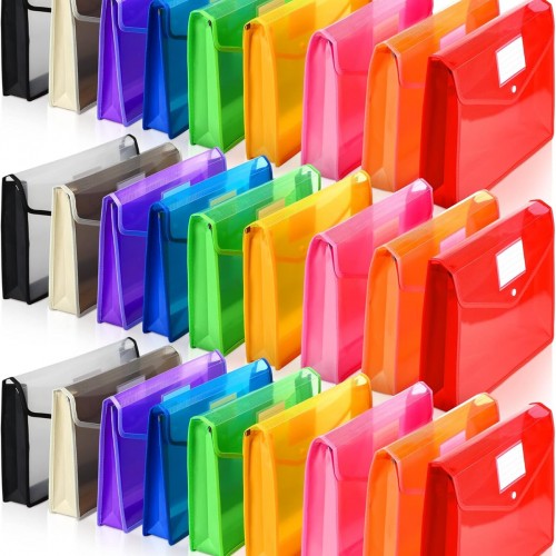 PerKoop 5 Pcs Expanding File Folder with Flap 7 Inch Expansion Expanding File Wallet with Elastic Cord Closure Letter Size Heavy Duty Document Organizer, 10 Slots, Brown