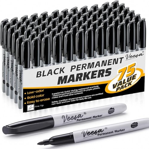 Permanent Markers, 60 Count Ultra Fine Point Black Permanent Markers, Works on paper, Plastic, Stone, Glass, Metal