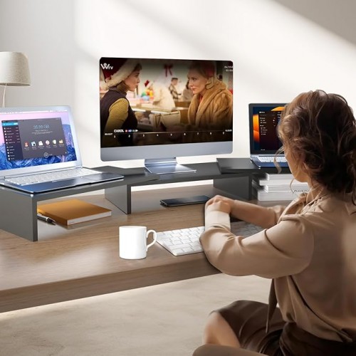 Pholiten Dual Monitor Stand Riser for 2 Monitors,Desktop Monitor Stand with Adjustable Length and Swivel Angles, Extra Long Multifunctional Stand up to 48.2″ fit Computer Laptop Printer Max 44 lbs