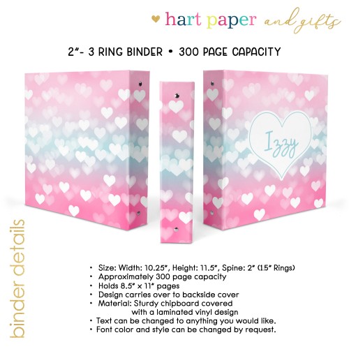Pink Blue Hearts Personalized Custom 2″ 3 Ring Binder • School Office Supplies