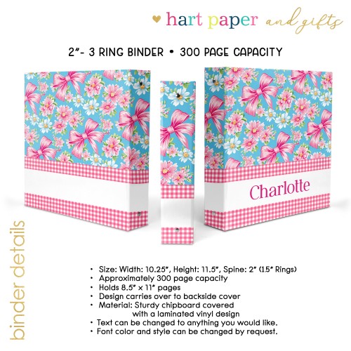 Each binder is made to order and personalized with your name, monogram, or custom text, making it a unique and functional gift for kids, teens, and adults. Choose from a wide selection of colors, patterns, and themed designs—from playful and bright to clean and professional—so there’s something for everyone.