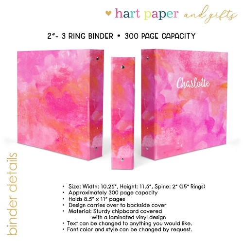 Pink Orange Abstract Personalized Custom 2″ 3 Ring Binder • School Office Supplies