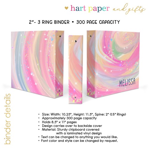 Pink Unicorn Rainbow Personalized Custom 2″ 3 Ring Binder • School Office Supplies