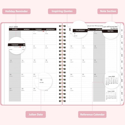- [COMPREHENSIVE PLANNING] – The planner july 2025-2026 includes not only weekly and monthly layouts but also a reference calendar, contact page, important date page, and holiday list, making it an ideal office school supplies.