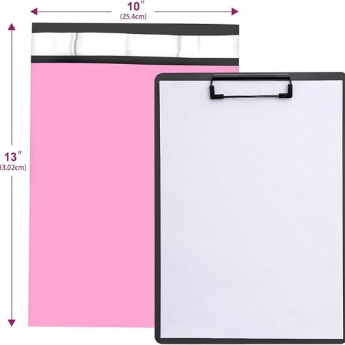 - Size of Poly Mailers Bags— Usable size: 10×13 Inch, 200Pack. These shipping bags have a pink outer surface, and gray inner lining, convenient for protecting the item’s privacy, the smooth touch of these packing bags allows you to attach self-adhesive stamps and address labels easily.