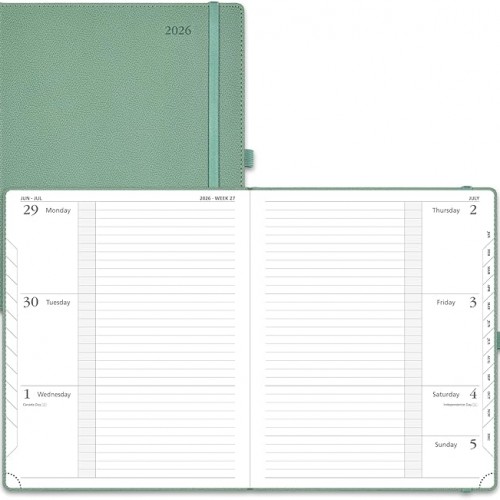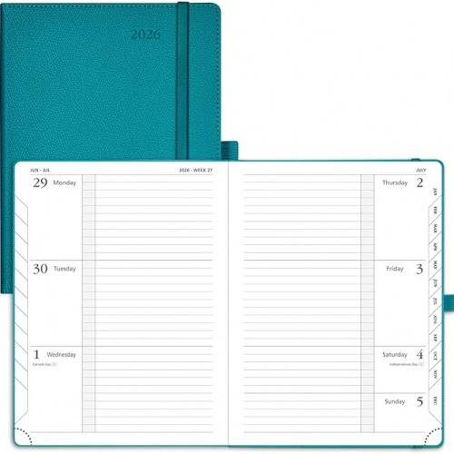 POPRUN 2026 Daily Planner One Page A Day – [8.5″ x 5.75″ Wire-Bound Hard Cover] Agenda 2026 Hourly Appointment Book with Monthly Calendar, Inner Pocket, Ivory Paper – Light Pink