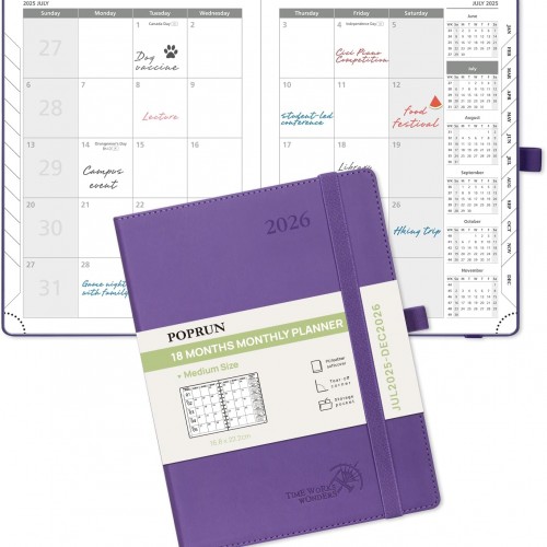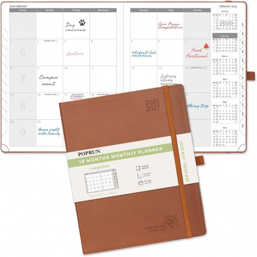 POPRUN 2026 Planner (Large Size 10” x 8” Wire-Bound Hard Cover) Daily Weekly and Monthly Calendar – Agenda 2026 (Jan.2026-Dec.2026) with Hourly Schedule, Monthly Tabs – Light Yellow