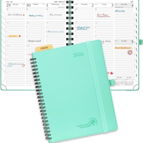 POPRUN 2026 Planner (Medium – 6.5” x 8.5”) with Hourly Schedule, Vertical Layout – 2026 Weekly Calendar (Jan. 2026 – Dec.2026) for Time Management, Monthly Tabs, Spiral Bound, Soft Cover – Black