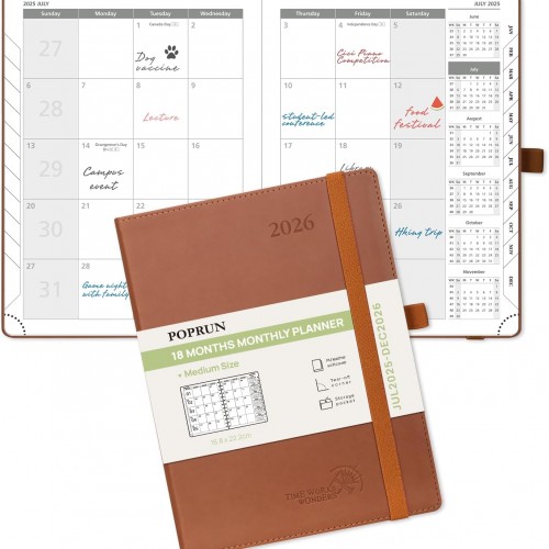 POPRUN 2026 Planner (Medium Size 8.5” x 6.25” Wire-Bound Hard Cover) Daily Weekly and Monthly Calendar – Agenda 2026 (Jan.2026-Dec.2026) with Hourly Schedule, Monthly Tabs – Black