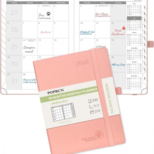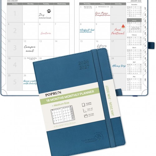 POPRUN 2026 Planner (Medium Size 8.5” x 6.25” Wire-Bound Hard Cover) Daily Weekly and Monthly Calendar – Agenda 2026 (Jan.2026-Dec.2026) with Hourly Schedule, Monthly Tabs – Navy Blue