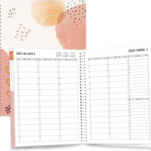 - 2 PAGES PER WEEK WITH TIME SLOTS – The vertical layout offers 2 pages per week to manage your time in 30-minute intervals from 7.am to 9.30 pm each day, ensuring enough room to write a to-do list. Additionally, each monthly layout includes an overview of the month and a priority area on the right side.