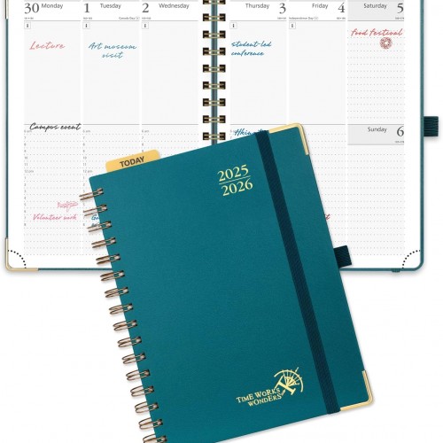 POPRUN Academic Planner 2025-2026 (July 2025-June 2026), Daily Weekly and Monthly Appointment Book (Wirebound Hard Cover – 10” x 8”) with Hourly Time Slots, Tabs, 100 GSM – Light Pink