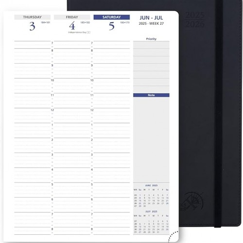 POPRUN Monthly Planner 2025-2026, 8.5” x 11.25”, 13-Monthly Calendar (July 2025-July 2026) 15-Minute Hourly Appointment Book with Stair Tabs, Soft Cover, 100GSM Paper – Midnight Green
