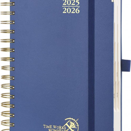 POPRUN Monthly Planner 2026-2027 Spiral Hardcover (6.25” x 8.5”), 18 Months Calendar (Jan.2026-Jun.2027) – 2 Pages per Month with Dotted Note Pages, Sunday Start, Laminated Tab – Light Yellow