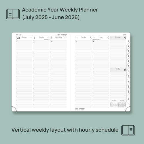 POPRUN Planner 2025-2026, (Medium 6.5” x 8.5” Hard Cover) Academic Calendar (July 25-June 26) Daily Weekly and Monthly Appointment Book with Hourly Time Slots, Monthly Tabs, 100 GSM – Black