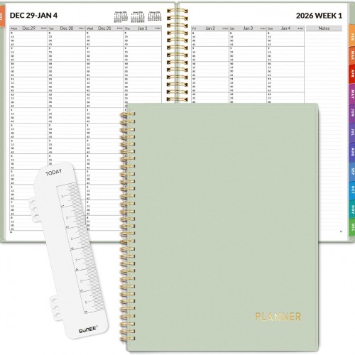 POPRUN Planner 2025-2026, (Medium 6.5” x 8.5” Hard Cover) Academic Calendar (July 25-June 26) Daily Weekly and Monthly Appointment Book with Hourly Time Slots, Monthly Tabs, 100 GSM – Pacific Green