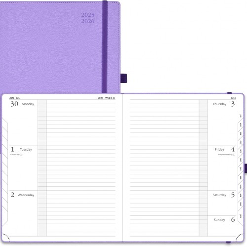 - BONUS FEATURES: The Tear-Off Corners and Stair-like Monthly Tabs enable easy locating of the current date. 2 Bookmark Ribbons are included to mark important pages.The Elastic Closure ensures the planner securely closed, while the self-adhesive Pen holder holds your pen. Additionally, the Foldable Pocket offers a convenient space to store important documents.