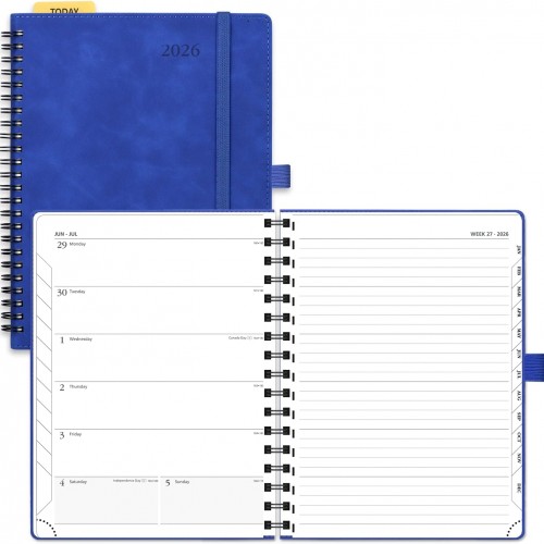 POPRUN Planner 2025-2026 Weekly Planner Notebook (Large 8.5”x 10.5”) Academic Calendar (JUL.25 – JUN.26) Appointment Book with Monthly Tabs, Spiral Soft Cover, Inner Pocket, 100 GSM – Brown