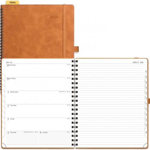 POPRUN Planner 2025-2026 Weekly Planner Notebook (Large 8.5”x 10.5”) Academic Calendar (JUL.25 – JUN.26) Appointment Book with Monthly Tabs, Spiral Soft Cover, Inner Pocket, 100 GSM – Lilac