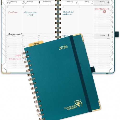- BUILT-IN EXTRAS: The Monthly Tabs allow you to quickly navigate and locate the current date. Tear-off Corners and Bookmark Ribbons help mark important pages, while an Elastic Closure ensures your planner stays securely closed. Plus, the Foldable Pocket provides the perfect space to store notes, receipts, and important documents.