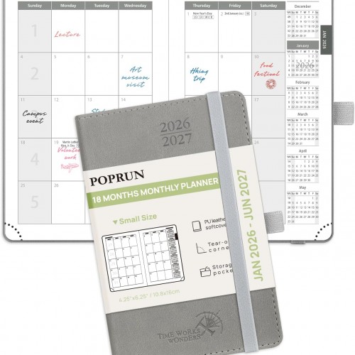 POPRUN Pocket Planner 2025-2026 (Spiral Hardcover – 4”x 6.25”), Daily Weekly and Monthly (July 2025 – June 2026) with Hourly Time Slots, for Purse, 100 GSM – Burgundy