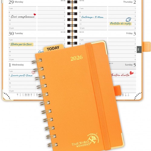POPRUN Pocket Planner 2025-2026 (Spiral Hardcover – 4”x 6.25”), Daily Weekly and Monthly (July 2025 – June 2026) with Hourly Time Slots, for Purse, 100 GSM – Pacific Green